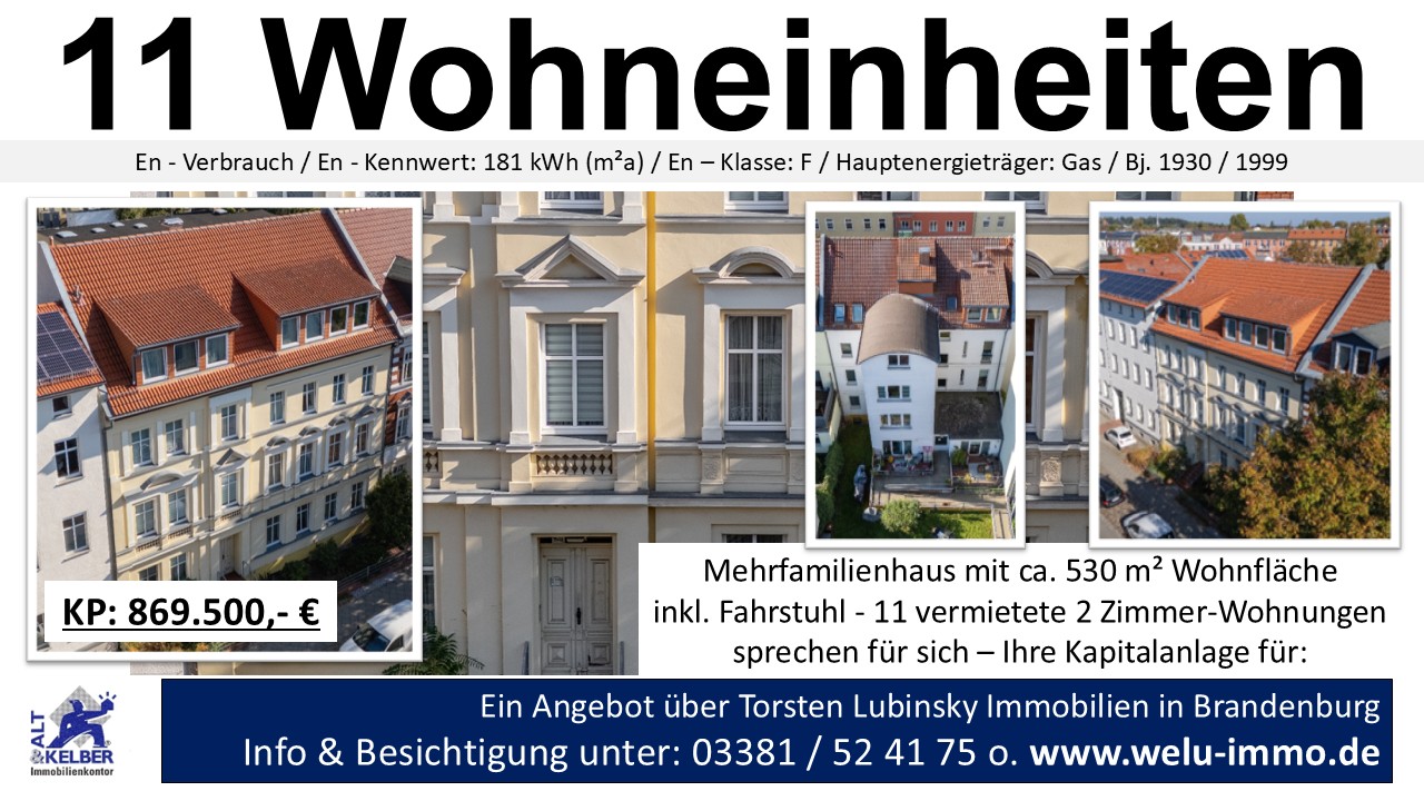 Mehrfamilienhaus auf ca. 404 m² großem Grundstück mit 11 Wohnheiten und Fahrstuhl - vollvermietet in grüner, ruhiger, zentrumsnaher Lage zu verkaufen für: