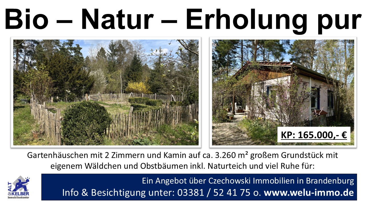 Massives Gartenhäuschen mit 2 Zimmern, Küche und Bad inkl. kleiner Werkstatt und zwei Garagen sowie kleinem Kräutergarten für Ihren grünen Daumen - All das für: