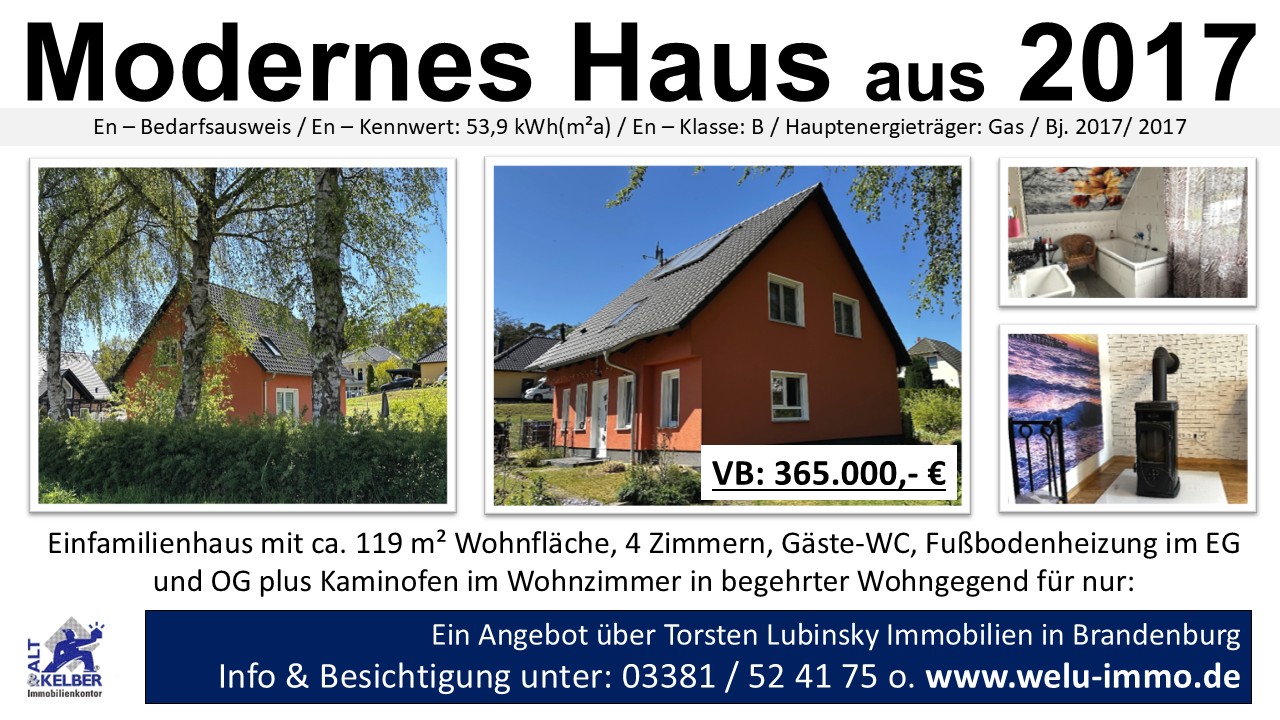 Tipp Topp modernes Wohnhaus Bj. 2017 mit Fußbodenheizung in beiden Etagen sowie Warmwasseraufbereitung über Solar auf ca. 757 m² großem Grundstück in Brandenburg an der Havel / OT für nur: